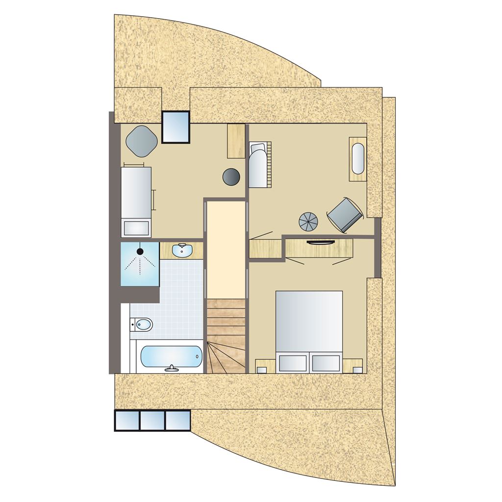 - Badkamer met ligbad, douchecabine, wastafel en toilet op de eerste verdieping