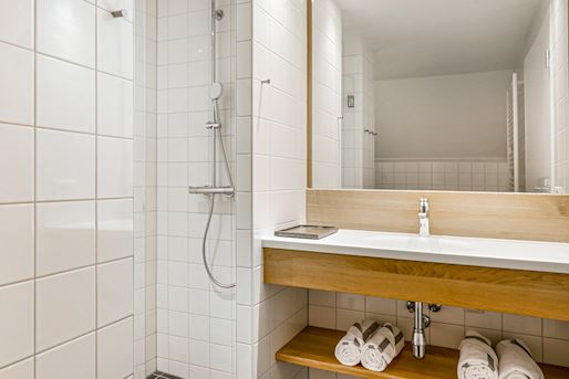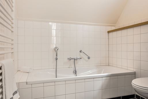 - Badkamer met inloopdouche, ligbad, wastafel en toilet
