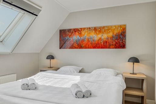 - Twee slaapkamers met twee 1-persoons Auping boxsprings op de eerste verdieping