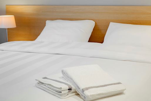- Slaapkamer met 2-persoons Auping boxspring, 2-persoonssofttopper en flatscreen-tv