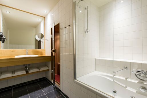- Badkamer met douche in bubbelbad, wastafel en toilet op de eerste verdieping